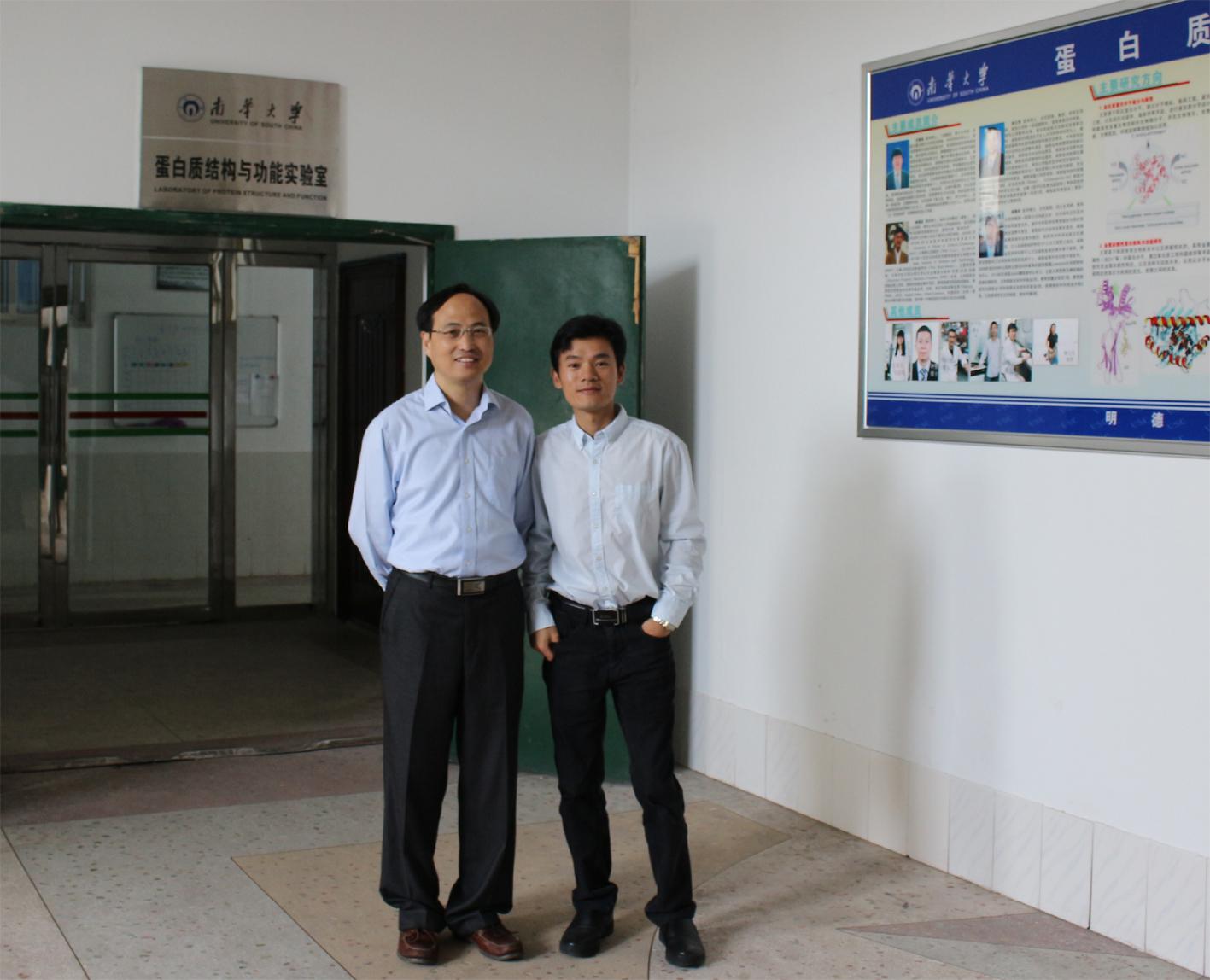 刘扬中教授(左)参观beat365官方网站蛋白质结构与功能实验室