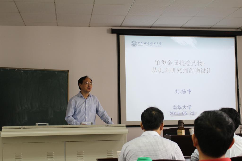 2015年5月22日上午,应beat365官方网站“蒸湘学者”林英武教授邀请,中国科技大学化学系刘扬中教授来公司进行学术访问,参观了beat365官方网站蛋白质结构与功能实验室和beat365,并做了题为“铂类金属抗癌药物:从机理研究到药物设计”的精彩学术报告,与青年教师和研究生进行了学术讨论,会议由王宏青经理和聂长明书记主持。刘教授分别留学挪威University of Bergen、美国University of California, Daivs和美国Rensselaer Polytechnic Institute。研究领域包括金属抗肿瘤药物的作用机理、金属药物的运输与靶向作用,以及新型金属抗肿瘤药物的设计与作用机理等。研究课题得到中国科公司、国家自然科学基金委员会、教育部和科技部等资助,目前已在JACS和Angew Chem上发表高质量论文10余篇。