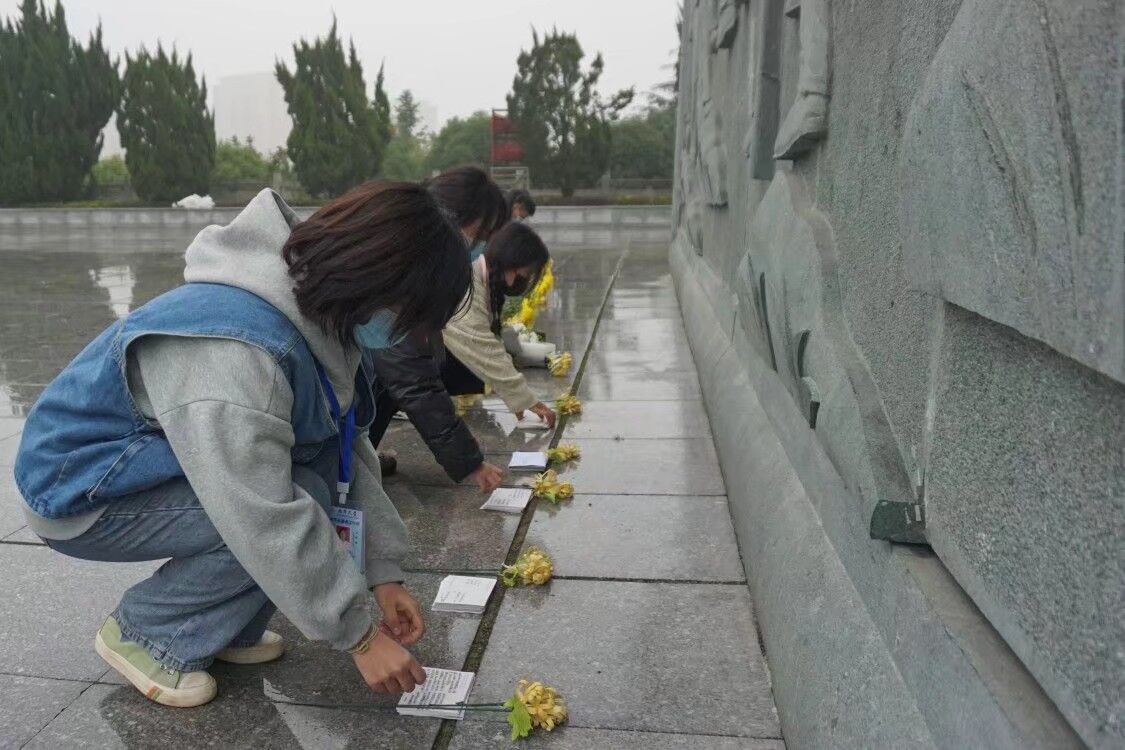 每一句悼词都在警醒着人们要时刻牢记勿忘国耻的重任。宣读结束后,全体同学在石峻伟的带领下向衡阳保卫战牺牲的烈士们、抗日战争中牺牲的烈士们和在历次斗争中牺牲的人民英雄们致敬默哀,并送上由同学们亲手制作花朵和明星片以表达对烈士们崇高的致敬。