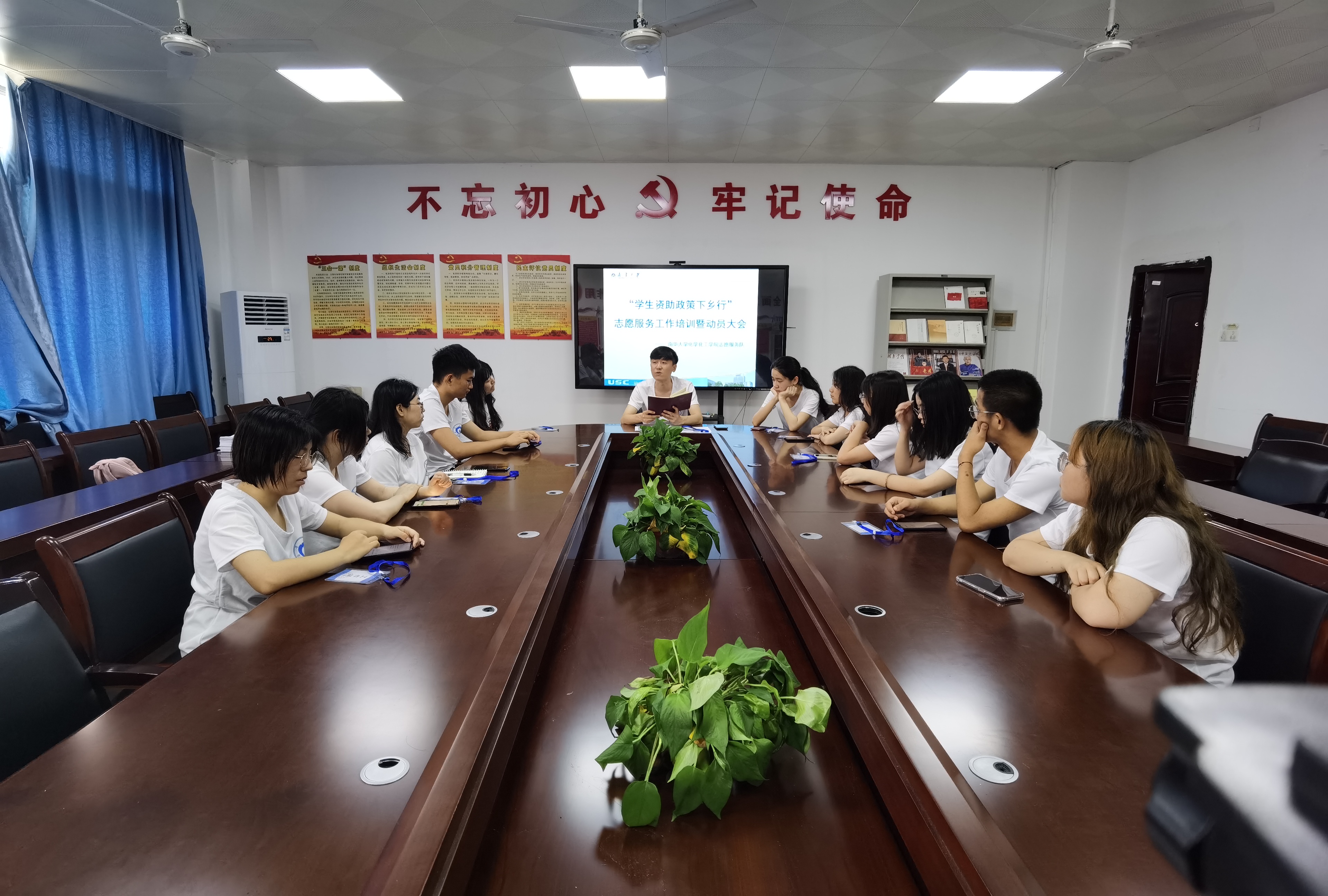 为落实立德树人根本任务,深化资助育人,献礼建党100周年。6月28日,beat365于化工楼党建活动室召开“员工资助政策下乡行”志愿服务工作培训暨动员大会,公司团委书记、资助专干钱通华老师以及全体队员参会,会议由钱通华主持。