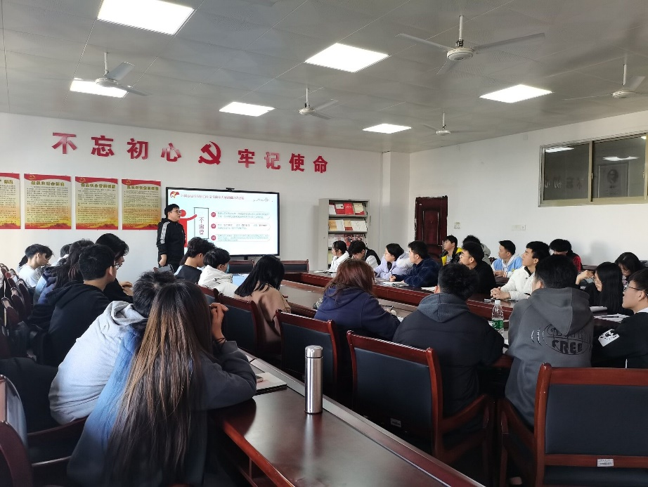 会议由“三个需要”引出,具体向与会人员介绍了“三个需要”,“四个伟大成就”,并解释了中国共产党为什么能,以及中国共产党百年奋斗对于个人的启示。在进行学习后同学们分享了自己对于十九届六中全会的感悟与体会,并表示要在未来的日子里将全会精神内化于心,外化与形,积极从百年党史中汲取养分向百年前那些为了新中国不懈奋斗的革命先烈学习。