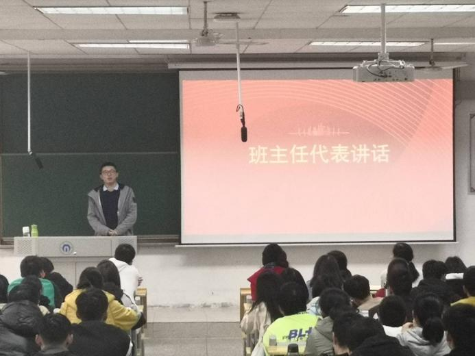 随后,班主任代表孔祥鹤老师进行发言。孔老师在发言中着重强调了学习氛围、学习态度和学习方法,并建议各班设立帮扶小组以此来帮助成绩较差的同学提高班级整体凝聚力。颁奖环节上,优秀员工及优秀班级代表纷纷上台领奖。之后黄胡玮彬和邹剑博同学分别分享了英语和高等数学学习经验,在场的同学们纷纷表示,都是受益匪浅的满满“干货”。