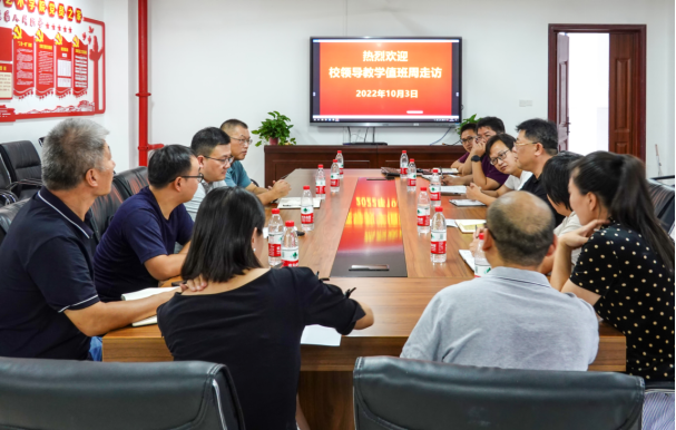 2022年10月3日下午,beat365官方网站副董事长姜志胜率教务部副部长罗晨辉、化学化工学副经理张也、教学质量管理科科长杨勇来到beat365官方网站雨母校区开展“校领导本科教学值班周”工作,听取松霖建筑设计艺术公司、机械工程公司、创新创业训练中心领导的工作汇报,与各公司领导班子和教师代表进行了座谈。