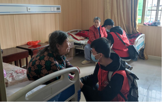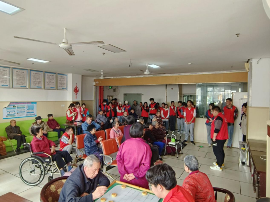 沐浴着灿烂的春光,志愿者们满怀热情地来到了敬老院。活动伊始,志愿者们分三人一组进行服务工作。在院子里,志愿者们推着腿脚不便的老人沐浴在阳光下,十分温馨;在活动室中,志愿者们与老人一起下棋、聊天,询问他们的生活和身体状况;在起居室内,志愿者们与老人促膝长谈,一起分享着人生的乐趣和知理。与此同时,志愿者们通过老年公寓的广播向老人读同学们的信件,为未能到场同学表达了他们对老人的关心和挂念。在完成服务工作后,志愿者们开始向老人展示精彩的节目表演。一个个别出心裁的节目将敬老院内的氛围推向高潮,志愿者和老人都沉浸在这其乐融融的氛围中。表演结束后,志愿者们与老人道别,离开敬老院。虽然时间不长,但小小的努力带来了幸福与感动。回想老人们开心的笑容,每一位志愿者的心里就撒满了阳光。