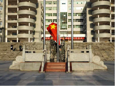 仪式伊始,国旗班庄重地将国旗护送至升旗台。伴着庄严的国歌声,五星红旗冉冉升起,迎风飘扬。公司师生全体肃立,齐唱国歌,向国旗行注目礼。