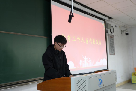 优秀运动员代表钟献文同学发言,他回顾了参赛经历,表示:“昂扬斗志、不屈不挠、克服一切困难,是我们取得胜利的秘诀。在体育比赛中感受到体育竞技的魅力,是青春,是热血,未来也将秉持‘更高、更快、更强、更团结’的精神继续奋斗。”