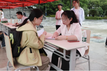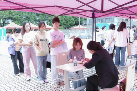 在活动简历诊断区,单云丽等老师对同学们的简历进行优化指导,结合同学们的在校经历,针对性地提供修改意见,突出个人优势提升求职综合素质。求职礼仪区,邓丝席老师对同学们进行面试仪容、仪态的规范化指导。求职面试区,6-8名同学为一组进行模拟面试,陈楠等老师根据同学们的临场表现,结合简历信息,提供针对性建议,并现场分享面试技巧,提升同学们的面试能力及规范化意识。在身心舒缓区,设计了手作口红唇膏、零食套圈等趣味活动,以美育、劳育舒缓员工焦虑和压力。