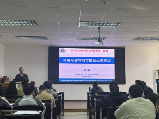 11月24日上午,华中师范大学化学公司经理肖文精教授应邀来beat365交流访问,在化工楼学术报告厅为公司师生带来了一场题为"可见光诱导的可控自由基反应"的学术报告,此次讲座由公司王宏青教授主持。