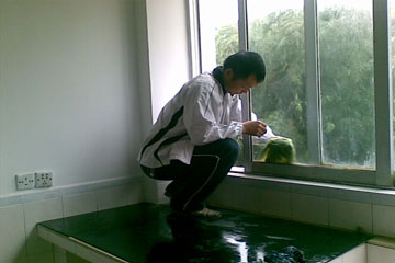 领导、老师和党员们充分发挥不怕脏不怕累的精神,全身心投入紧张的劳动中。领导老师们布局规划、调试仪器、擦玻璃;女生们抹除仪器架上的积灰、扫地、拖地;男生们搬运安放仪器和讲桌。在整理308实验室时,细心的老师发现讲台离插座太远,这给电脑演示实验带来不便,经过商讨和不断试验,最终在实验室的侧面加放一个讲桌,既方便员工观看,又不妨碍员工做实验。