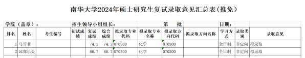 按照公司及公司研究生招生工作的复试方案,根据2024年09月29日的复试成绩排名,现公布最终拟录取名单如下。研招网发送录取通知如超过4小时未确认视为放弃。对复试成绩及上述同学的建议录取有异议,请以书面形式于2024年10月03日前向公司反映。反映情况要实事求是,具体真实,署真实姓名,以便调查核实。电话:0734-8282375,联系人:王老师。