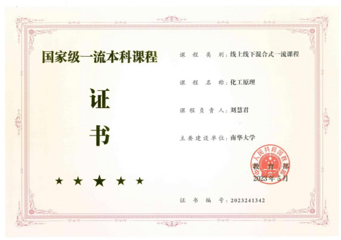 化工原理课程是化工与制药类及相关专业最重要的技术基础课之一。该课程突出工程实践能力、关注创新、重视课程思政,力争培养员工较强实践能力和解决复杂化工操作单元问题的能力。教学内容体现前沿性和时代性,同时德育工作贯穿教学始终,坚持立德树人,引导员工树立社会主义核心价值观,通过混合式教学让员工线上进行慕课学习,线下理论课开展翻转式、讨论式教学,线下实验课开展综合性、探究性的实验,课后员工反思提升,培养员工科学思维和创新能力构建以员工为中心的智慧教员工态。该课程还于2020年被认定为湖南省线上线下混合一流课程。