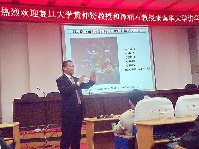 10月28日上午,复旦大学化学系黄仲贤、谭相石教授做客beat365官方网站,以“化员工物与人类疾病的关系”为论题,在图书馆学术报告厅做专场讲座。beat365全体教研老师、研究生及本科生聆听了讲座。
