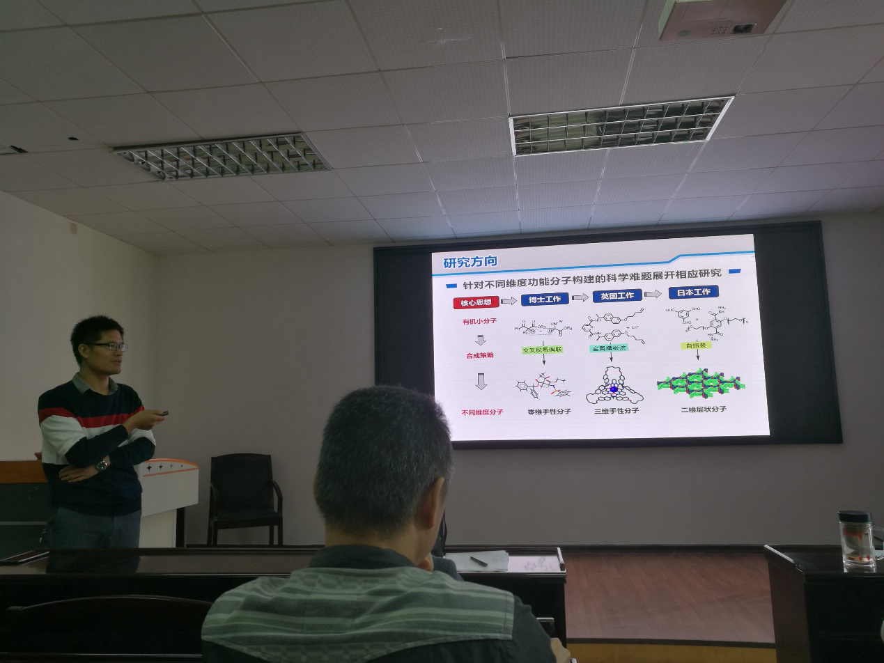 报告中,张根教授首先介绍了自己的求学经历,然后以求学经历为主线,介绍了自己研究方向的变化以及在各个阶段所取得的科研成果。主要包括针对不同维度功能分子的构建和应用研究。报告中张根教授重点介绍了共价有机框架(COF)在固态锂电池开发中的应用。因为聚合物电解质是开发固态电池的热门材料之一,但是由于其热稳定性差以及离子电导率低,限制了在高能量密度和耐高温电子设备中应用研究。COF作为一种新兴晶态材料,具有长程有序结构和很好热稳定性。因此,用COF替代传统聚合物是解决上述瓶颈问题最为有效的途径。本报告将详细介绍了张根教授课题组发展的构建化学稳定和热稳定的COF基固态电解质(膜)新方法和新技术,系统讲述了COF结构与性能的构效关系,为开发、柔性、高能量密度、耐高温安全可靠的新能源存储器件提供新思路。报告会后张根教授热情并耐心地回答了在场师生提出的各种问题。