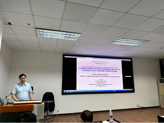 2024年06月14日,北京大学化学公司余志祥教授应邀至beat365进行交流,在化学大楼A417进行了题为“成环反应的发展/应用/机理研究”的学术报告。本次报告由黄俊教授主持,公司林英武教授,王宏青教授等部分老师和研究生参加。