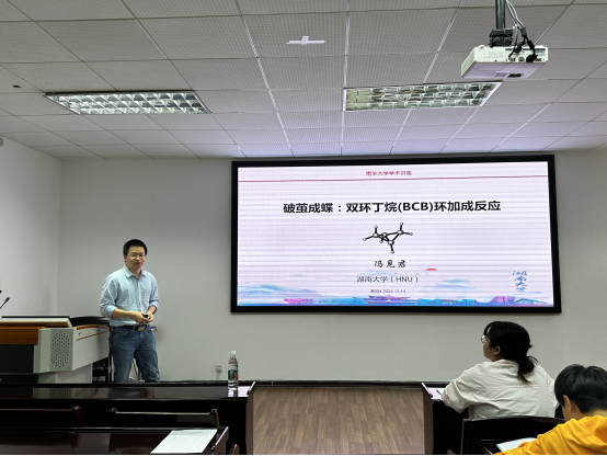 2024年11月14日上午,湖南大学冯见君教授来公司进行学术交流,并为公司师生作“破茧成蝶:双环丁烷(BCB)环加成反应”专题学术报告。此次报告会由公司林英武经理主持,部分师生参加会议。