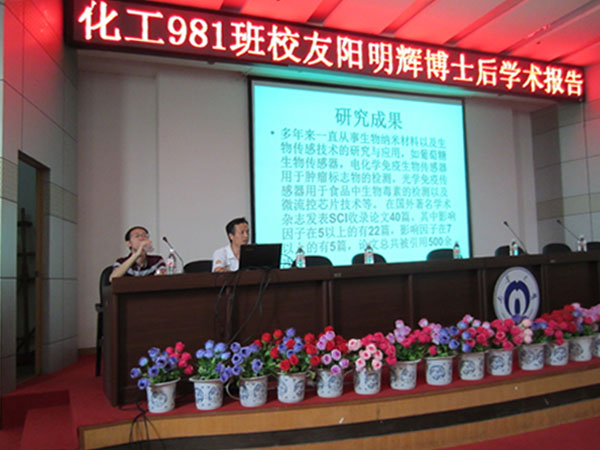 5月20日,beat365981班员工阳明辉博士后在图书馆报告厅进行有关生物纳米材料在传感器中的应用的学术报告。现场座无虚席,许多化工专业人士及相关专业的员工前来听阳明辉博士后的讲座。