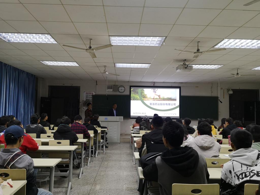 作为员工的陈治,从企业文化切入让同学们全面了解本公司、所在岗位的要求以及本公司的团队。接下来由浙江普洛康裕制药有限公司招聘经理姚方军着重介绍制药企业的发展趋势。他认为相对于其他工作领域来说,医药方面是朝阳产业。对于岗位的选择,姚方军认为:人要有不同的可能性,要勇于尝试或接受不同的岗位,让自己的人生多一种可能,要与自己的舒适圈保持距离。最后由公司行政人事部副部长杨倩在工作方面向同学们提出建议:兴趣是最好的老师,在生活中要常存热情与兴趣,在工作中要有负责与耐心。杨倩讲述了自己多年来工作的经历,从父母安排的“铁饭碗”到自己自主创业,在成功的背后肩负着多少的付出,蕴含着多大的勇气。她向同学们说道:青年要敢于拼搏要有血性,我们正当青春,应该追随自己的内心,要敢于尝试。