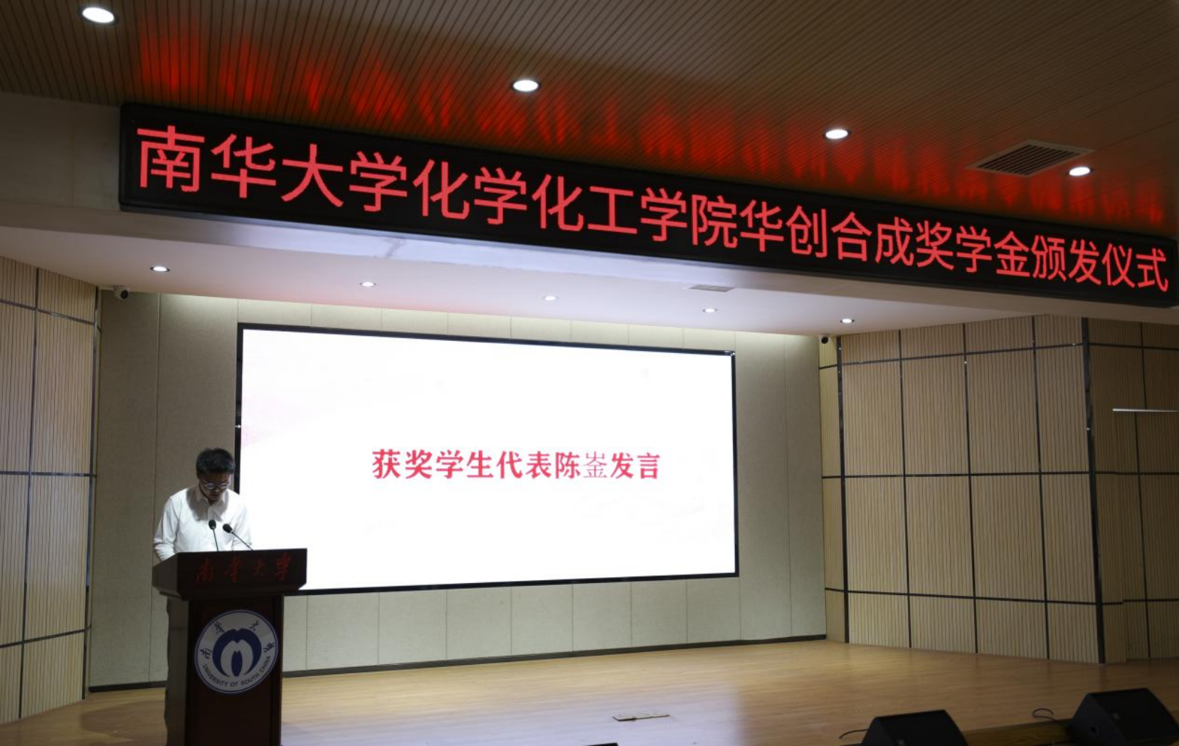 获奖员工代表陈崟发言,他首先感谢了华创合成制药股份有限公司为beat365品学兼优的员工设立这项奖学金,然后感谢了公司领导老师和同学的对自己的支持和帮助,最后号召全体同学努力学习,争做有理想、敢担当、能吃苦、肯奋斗的新时代新青年。