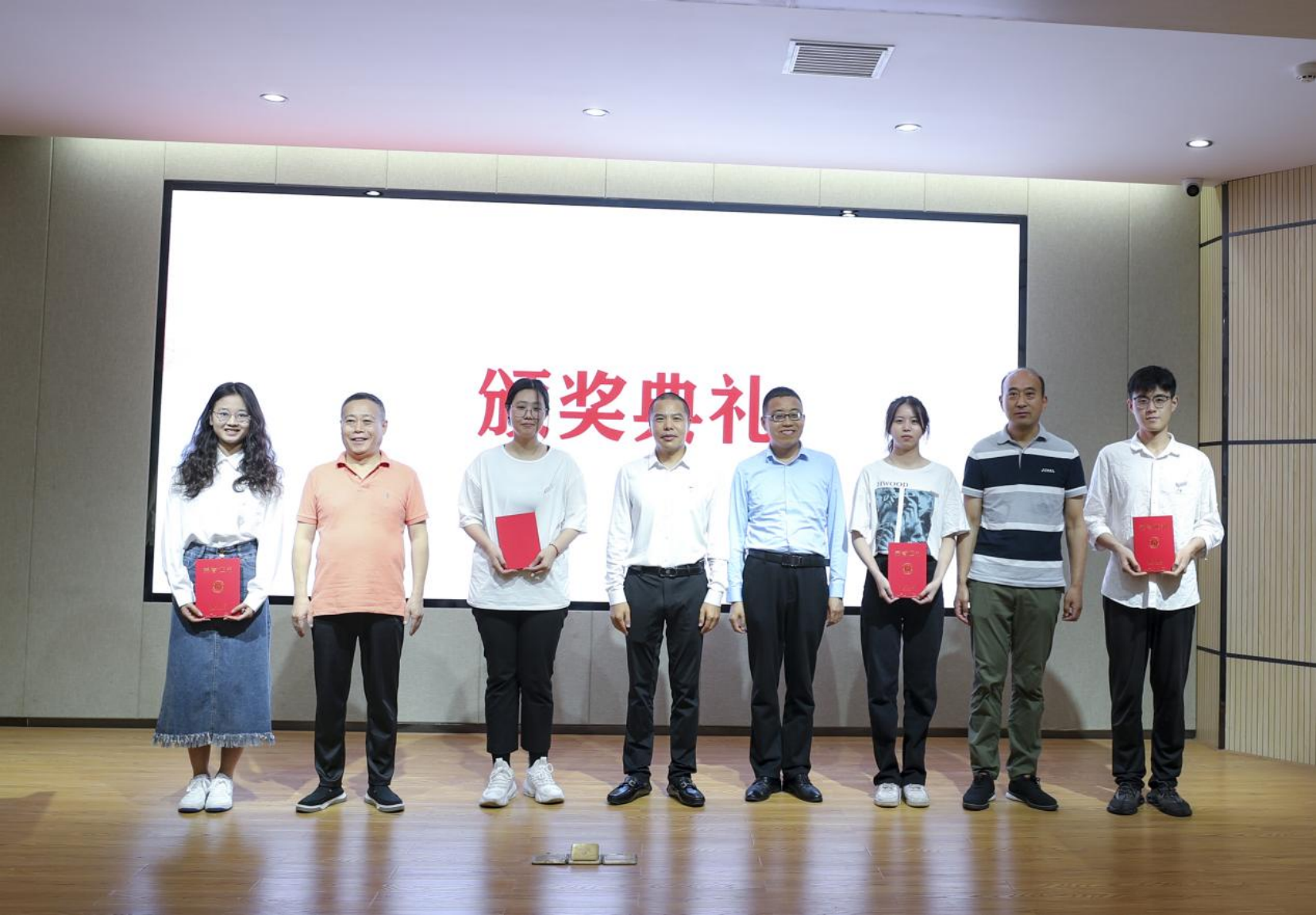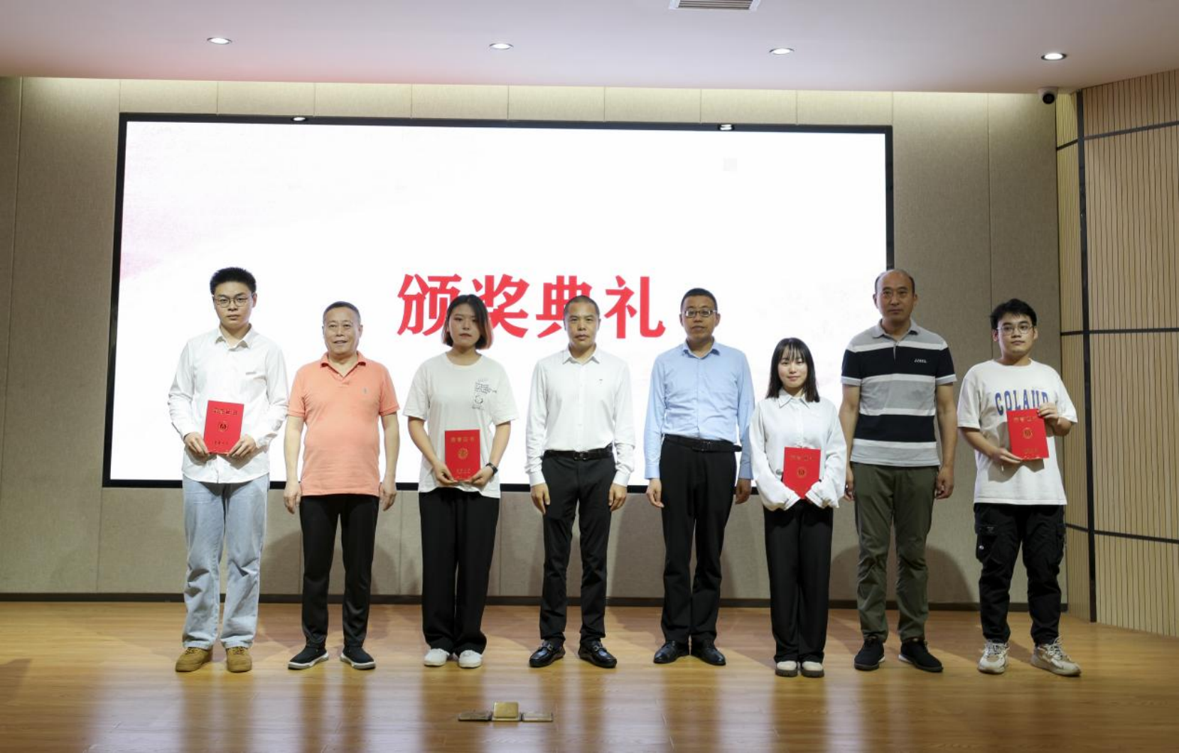 李先国宣读了获奖同学名单,到场嘉宾为八位获奖同学颁发beat365官方网站华创合成奖学金证书并合影留念。