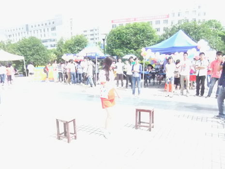 本次活动以班级为单位进行小组赛,主要目的是提高参与者的团队意识,培养默契。活动主要包括四个主要游戏。一、“搬运工”,即参赛者双方将腿绑在一起,向指定地点运送篮球。在此过程中状况百出,笑声不断。二、“比记忆”:两人合作,在规定时间内背诵所给成语。三、“你说我猜”则是最吸引眼球的游戏,一方通过肢体语言传达,另一方猜测对方所描述的物体。四、是最传统的“瞎子背瘸子”,双方需要顺利通过“路障”方可获奖。在整个游戏过程中,现场气氛热烈而活跃,不时传出同学们发自内心的爽朗的笑声,他们用热情和快乐感染着周围的人。