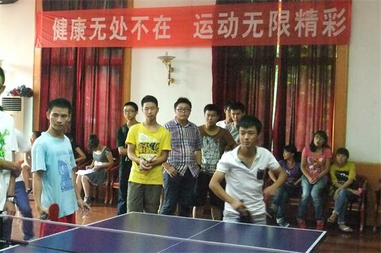 男单女单比赛一开始,选手们各尽其力,奋力拼搏。淋漓尽致的展现了当代老员工青春上的精神。当现场气氛便进入了白热化的状态时,一旁观战的彭书记也忍不住加入了这场拼搏,与女单冠军易满意同学打了一场高手与高手之间的对决赛。接下来进行的是男女混双比赛。在整个比赛的过程中,选手们默契的配合,完美精湛的球技无疑都为这场大赛平添了一道亮丽的风景。最终,材料二班的同学一微弱的优势战胜对手,夺得大赛冠军。