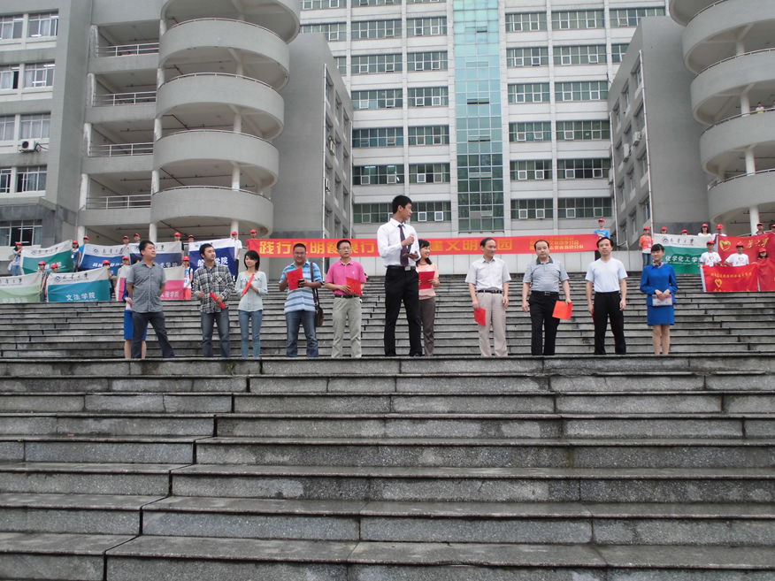 本次活动共有五项流程。首先,主持人介绍出席嘉宾,宣布活动开始;接着,衡阳市文明办罗冬云主任介绍活动意义;然后,共青团beat365官方网站委员会书记谢铷鸿老师宣读倡议书;随后,由化学化工公司党委书记聂长明老师致辞,船山公司员工代表张翠翠带领大家宣誓;最后主持人邀请嘉宾签名、合影。
