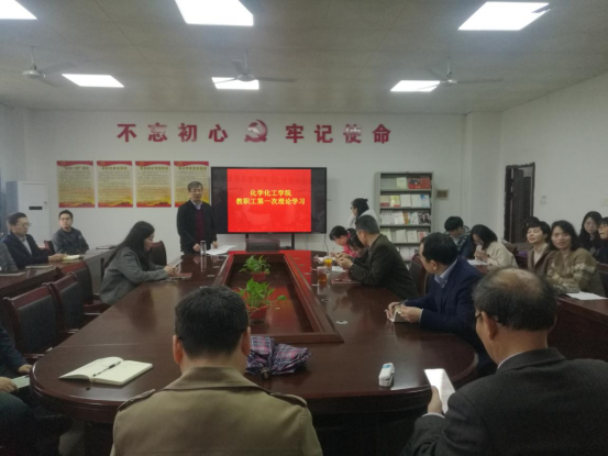 2021年4月12日星期一下午3:00~5:00点,化学化工公司党委组织公司全体教职工在公司党建室,开展了教职工理论学习。会议由公司党委书记王宏青教授主持。