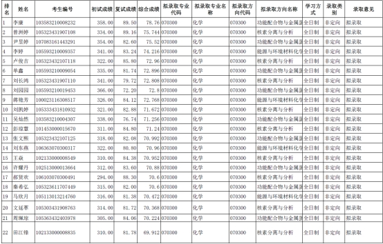 按照公司及公司研究生招生工作的复试方案,根据2023年4月10-11日的复试成绩排名,现公布最终拟录取名单如下。研招网发送录取通知如超过12小时未确认视为放弃,将自动按综合排名中暂不录取人员进行替补。对复试成绩及上述同学的建议录取有异议,请以书面形式于2023年4月26日前向公司反映。反映情况要实事求是,具体真实,署真实姓名,以便调查核实。电话:0734-8282375,联系人:王老师。